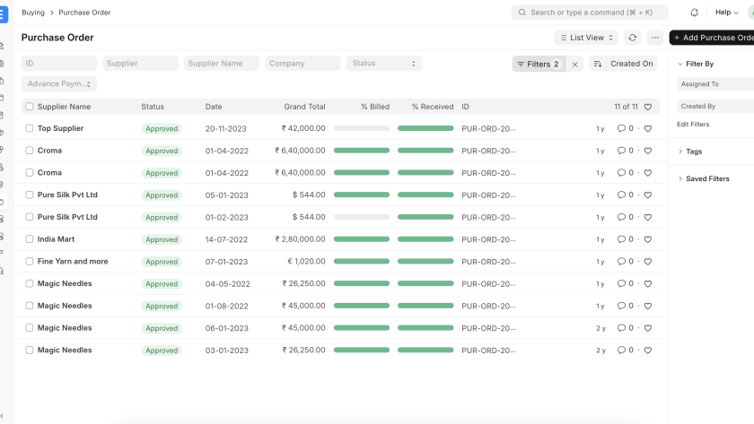 Late deliveries and pricing issues can impact profits. ERPNext automates purchase requests, tracks vendor performance, and helps you negotiate better deals. Streamline sourcing and procurement to get the best suppliers at the best prices.