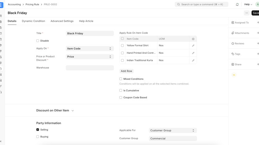 Maximize profitability with dynamic pricing and discount strategies. Whether it’s tiered pricing, bulk discounts, or seasonal offers, ERPNext gives you full control. Manage customer credit limits, automate invoicing, and keep cash flow steady with real-time payment tracking.